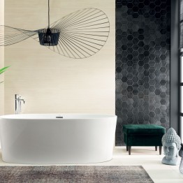 Inspiracją przy tworzeniu kolekcji był naturalny trawertyn. Stąd płytki ścienne w subtelnym, beżowym odcieniu. Horizon to także mozaiki ścienne w dwóch kolorach ? beżowym i czarnym. Heksagonalne kształty i proste przecięcia to prawdziwa nowoczesność. Takie właśnie pomieszczenia powstają z użyciem tej kolekcji.