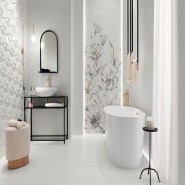 Obraz gresowy - dekoracja ścienna dedykowana do kolekcji podłogowej Velo Bianco flowers 1 1198 x 598 Mat + Połysk [DOMINO]