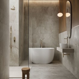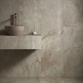 Kolekcja Mountain Trip inspirowana jest surową naturą kamienia skalnego. Tło w ciepłym odcieniu szarości przenikają beżowo-brązowe akcenty oraz drobne ciemniejsze żyły. Grafika ujmuje wyrazistymi detalami i dopracowaną stylistyką. Naturalność kamienia uwydatnia matowe wykończenie, a także specjalne efekty zastosowane na powierzchni, które wyraźnie akcentują użylenia. Miejsca te efektownie połyskują pod wpływem światła, jednocześnie nadając im delikatną strukturę wyczuwalną pod dotykiem. Gra światła na powierzchni dodaje płytce wyrafinowanego charakteru. Kolekcja znakomicie wpisze się w aranżacje w stylu modern classic. Będzie też atrakcyjną bazą nowoczesnych wnętrz. Gresy będą dobrze komponować się z trendową czernią, ale także powracającymi brązami i głębokimi odcieniami egzotycznego drewna.
