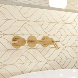ANELLO ? KOJĄCA HARMONIA ZAKLĘTA W LUKSUSIE Kolekcja Anello, inspirowana klasycznym połączeniem złota z kamieniem, wprowadzi do Twojej przestrzeni ponadczasową elegancję, emanując wyrafinowanym luksusem. Eklektyczny charakter płytek nie przeszkodził w stworzeniu spójnej wizji, która wypełnia otoczenie relaksującą harmonijnością, dając ukojenie zmysłom. Pełna oferta kolekcji Anello obejmuje: beżowe płytki ścienne, inserta ze złotymi motywami geometrycznymi i organicznymi oraz modele strukturalne. Wszystkie elementy wchodzące w jej skład dostępne są w formacie 30x60 cm.